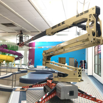 Among the newest in access technology, our track-mounted light-weight booms are truly a two-man personnel lift that can “go anywhere”. Our rental fleet features non-marking rubber tracked chassis HYBRID powered which means Each BlueLift is equipped with 2 fuel options- electric (lithium battery powered) for indoors, and direct drive (gasoline powered) for outdoor use.