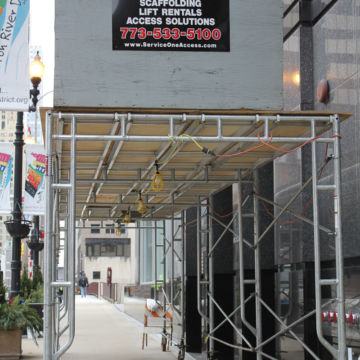 As an approved City of Chicago erector of light duty and heavy-duty sidewalk canopy scaffolds, we provide expert installation of light duty rolling canopies (150 PSF) for maintenance and heavy-duty (250 PSF) sidewalk canopies for construction. Equipment is available for purchase, or rental.